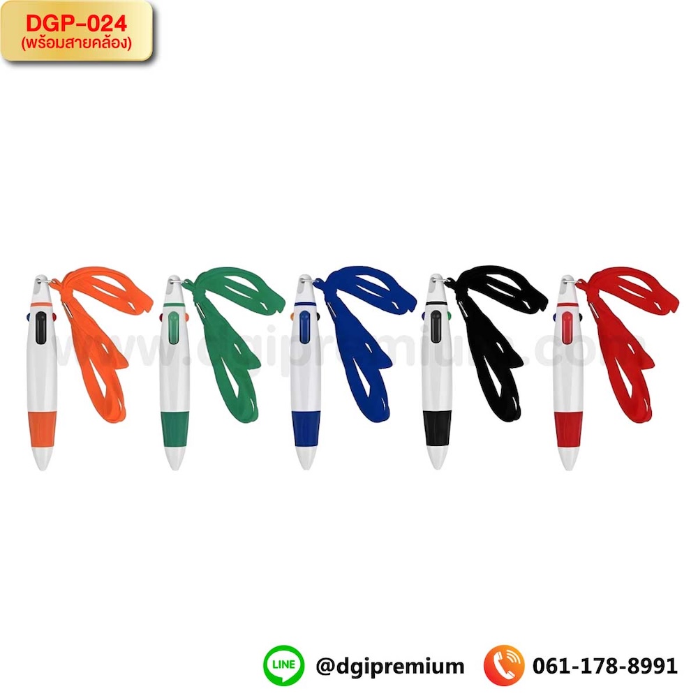 DGP-024 ปากกาพลาสติก 4 ใส้ (พร้อมสายคล้อง)