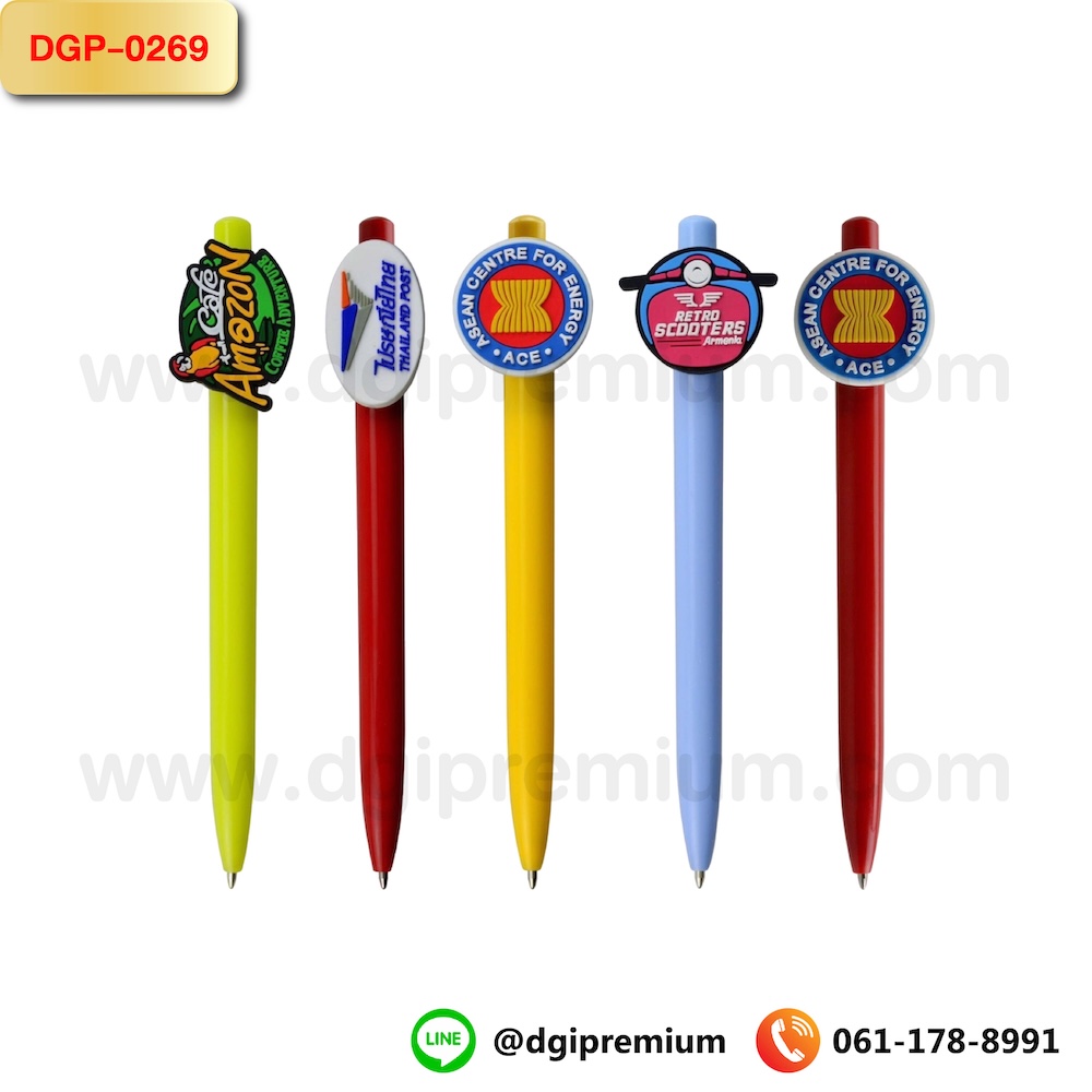 DGP-0269 ปากกาพลาสติกพร้อมยางหยอด (แบบกด)